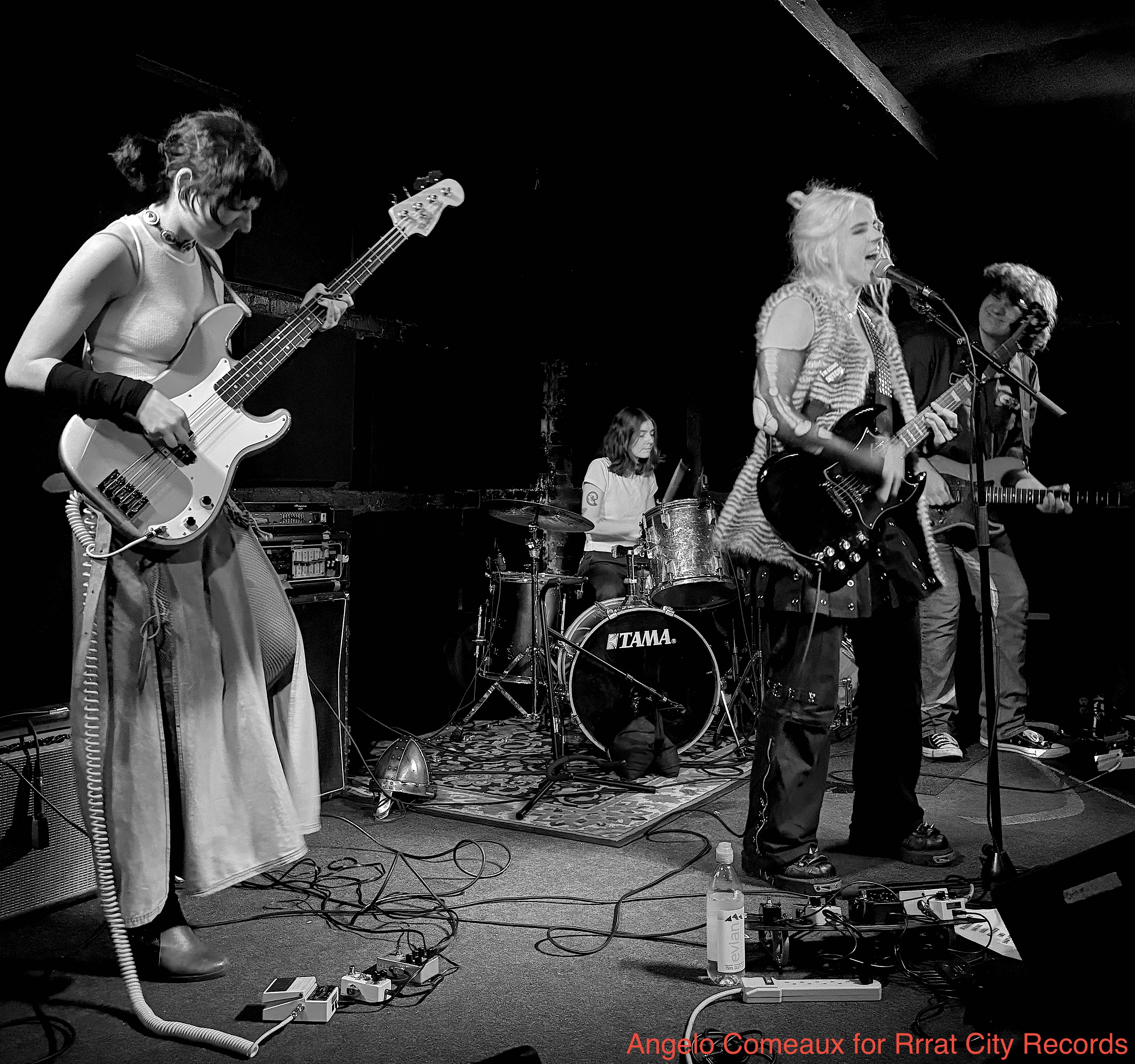 QIRL had matching jumpsuits, we imagined them as some sort of greaseless mechanics. There’s a killer record store in Providence, RI, called Armageddon Records we used to frequent. They’d always be playing some sort of punk thrash inside and QIRL would fit right in with this vibe. Their six string bassist was a standout performer. They shouted a refrain of “I AM NOT AN ARTIST, I AM A BILLBOARD”. We wonder what that billboard would say.