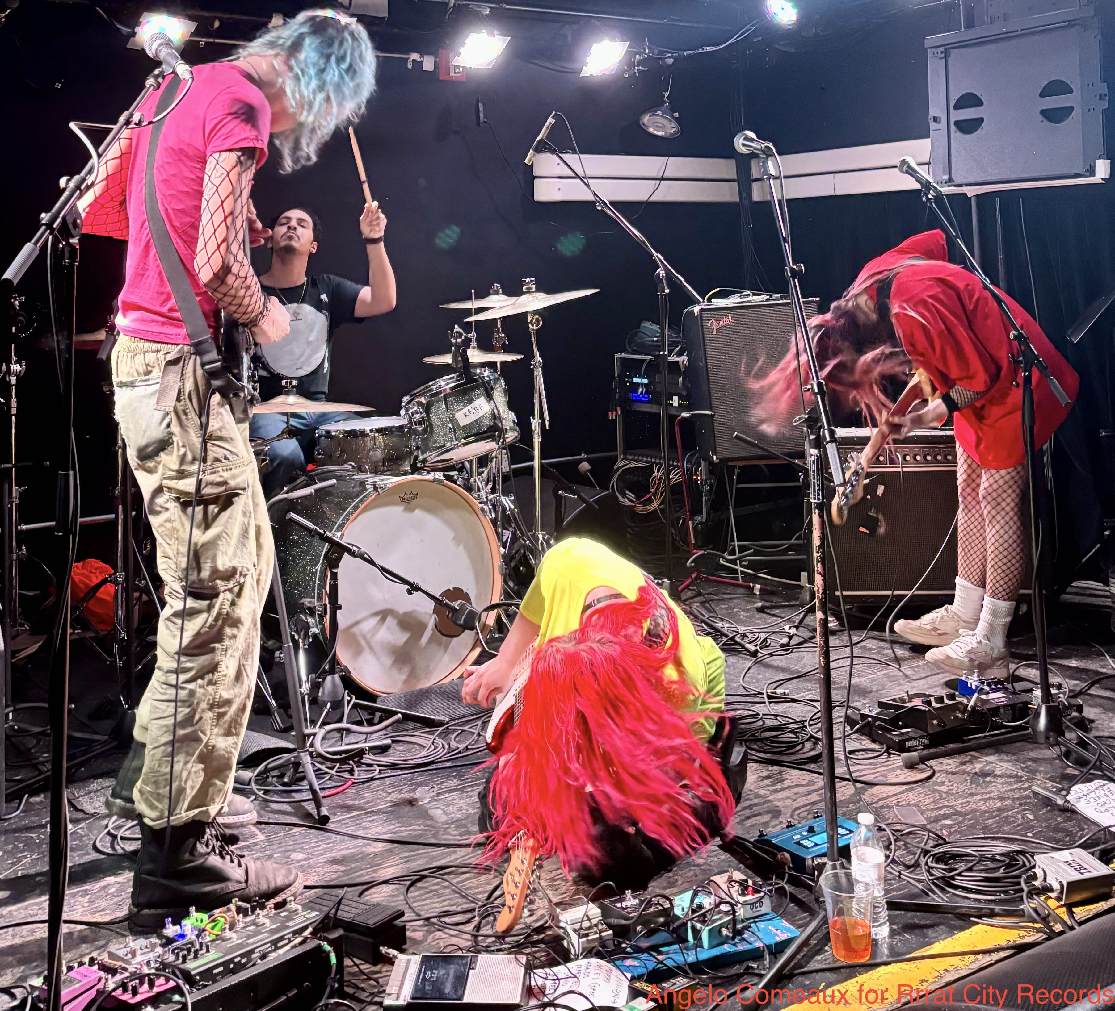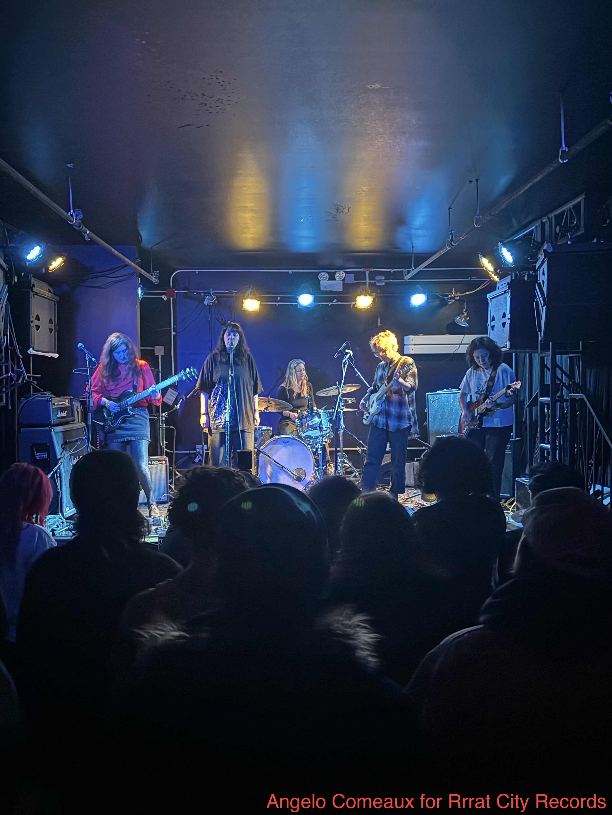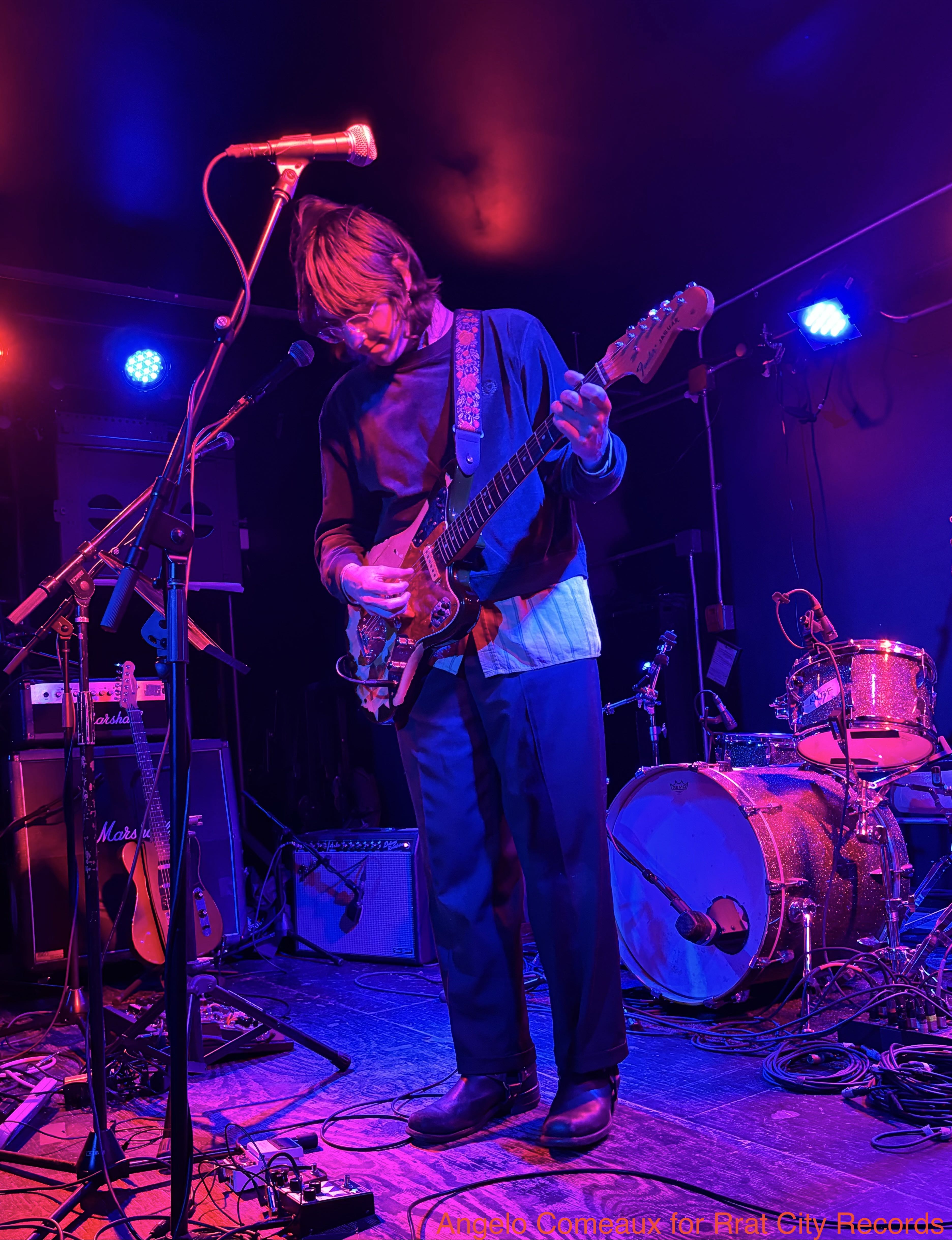Raisalka came on next, cramming all five members on stage for a quick set of fireworks. Lots of sonic ground was covered in a short amount of time. Songs ranged from bouncy and energetic, to slightly headbanging, to straight up noisy. Their drummer held it down for every groove. Props to all the guitarists for each forgoing a pedalboard and instead daisy-chaining their pedals, we like the look.