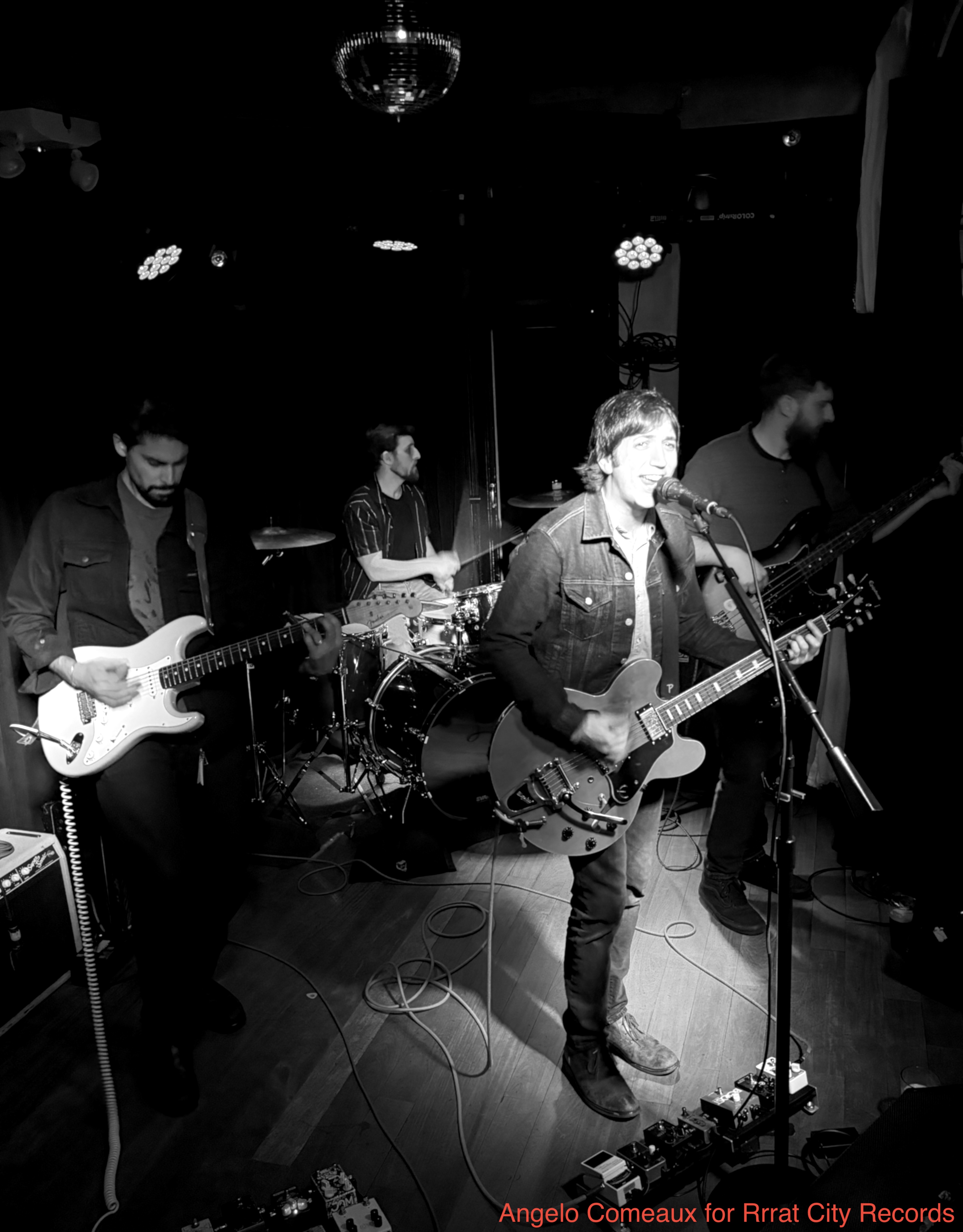 We arrived at the tail end of Fellow Feeling's opening set. Their alt rock was clean and down the center. The stage is almost comically small so part of their performance was the balancing act of making sure the four musicians didn’t strike each other with their instruments. No sooner did we think this did they invite a fifth member onto the stage to sing. Then for the last song, invited a sixth member to join. Packed liked sardines one of them got on the microphone to declare “Someone up here stinks... I think it’s me!”.